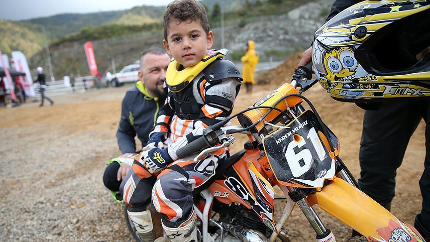 Düzce'nin Kaynaşlı ilçesinde düzenlenen Türkiye Motokros Şampiyonası'nın 5. ayağında 50 cc kategorisinde yarışan 4,5 yaşındaki Kerem Yılmaz, pistlerde sporseverlerin ilgisini çekiyor.