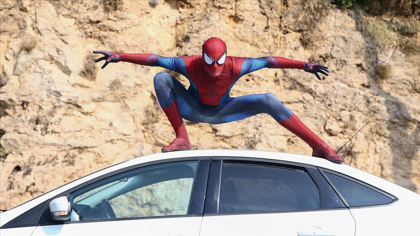 Antalya'da "Örümcek Adam" kostümüyle kentin en işlek caddelerinde ve parklarında dolaşan Burak Soylu, yaptığı hareketlerle en çok da çocuklardan ilgi görüyor.