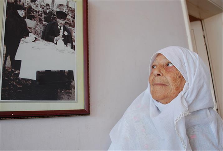 Büyük Önder Mustafa Kemal Atatürk'ün 19 Kasım 1937'de Adana Kız Enstitüsü'nü ziyareti sırasında, aynı fotoğraf karesinde yer alan 91 yaşındaki Remziye Tatlı, o günkü heyecanı ve mutluluğunu halen yaşıyor.