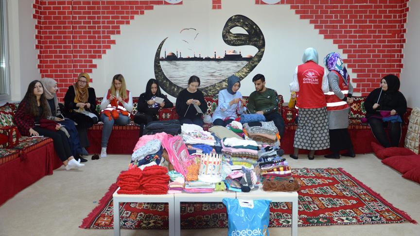 Kırklareli'nin Lüleburgaz ilçesinde bir grup gönüllü genç, doğudaki köy okullarındaki minikler için atkı, bere, patik gibi ürünler örüyor.