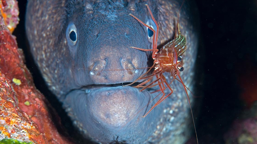 Balıkesir'in Ayvalık ilçesinde müren balığı ile karidesin simbiyotik (iki canlının tek bir organizma gibi birbirleriyle yardımlaşarak bir arada yaşamaları) ilişkisi kaydedildi.