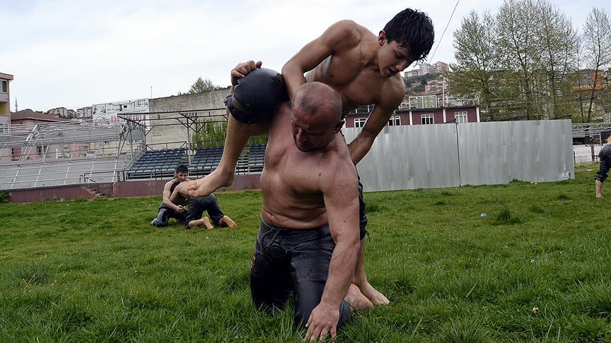 Zonguldak'ın Alaplı ilçesinde 8 yaşında yağlı güreşe başlayan lise öğrencisi Ahmet Uğuz, pehlivan babasıyla aynı er meydanını paylaşıyor.