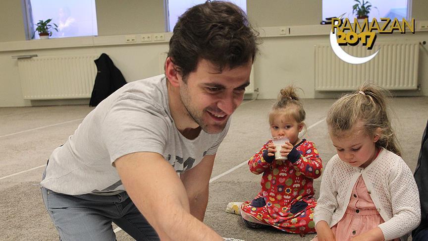 Yaklaşık 22 saatle en uzun orucun tutulduğu İzlanda'da yaşayan Türk vatandaşı Alptuğ Erkoç, iki küçük kızının da İslam'ı öğrenmesi için onlarla beraber camide iftar edip, cemaatle namaz kılıyor.
