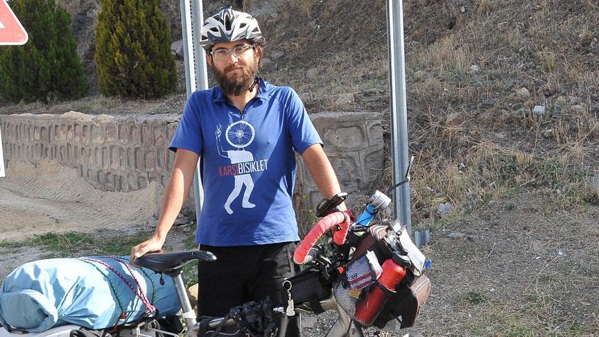 Barışa dikkati çekmek için İzmir'den 6 ay önce bisikletiyle yola çıkan ve 50 il gezip 9 bin kilometre pedal çeviren 27 yaşındaki gezgin Ozan Yılmaz, 81 ili gezmeyi hedefliyor.