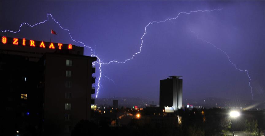 Başkent Ankara'da akşam saatlerinde başlayan yağmur ile birlikte gökyüzünü aydınlatan şimşekler, dikkati çekti.