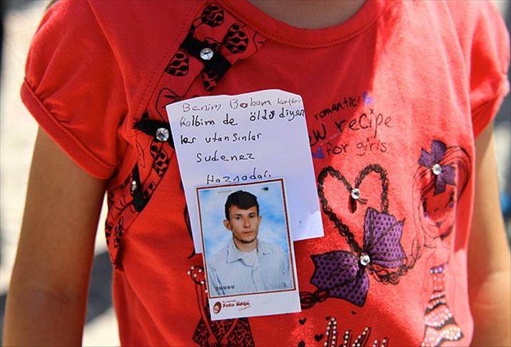 Sudenaz, "Çok özlediğim babamın fotoğrafını yakama astım. Anneme de babamla ilgili yazı yazmak istediğimi söyledim. Sonra bu notu annem yazdı, ben de astım" dedi.
