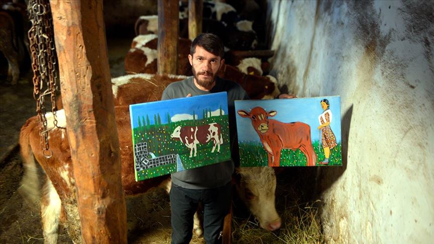 Çağlayık köyünde büyükbaş hayvan besleyerek geçimini sağlayan 35 yaşındaki Öztürk Nuh, baba mesleğini sürdürürken bir yandan da meraklı olduğu resimde çalışmalarını sürdürdü.