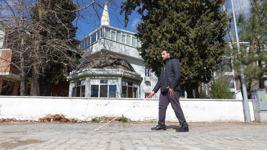 Kırklareli'de doğuştan görme engelli müezzin Hüseyin Özkan, azmiyle çevresindekilere örnek oluyor.