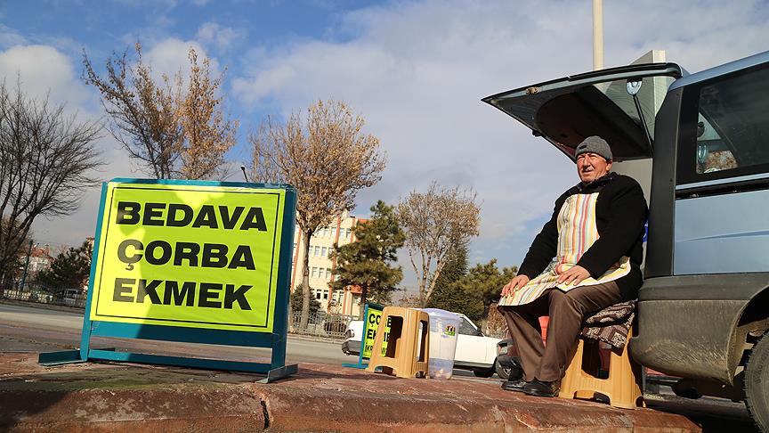 Çevredekilerin "çorbacı dayı" adıyla seslendiği Yıldız, AA muhabirine bir gününü anlattı.