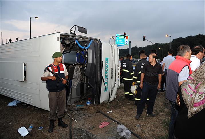 Bolu'da, manevra yaparken devrilen midibüste bulunan 29 kişi yaralandı.