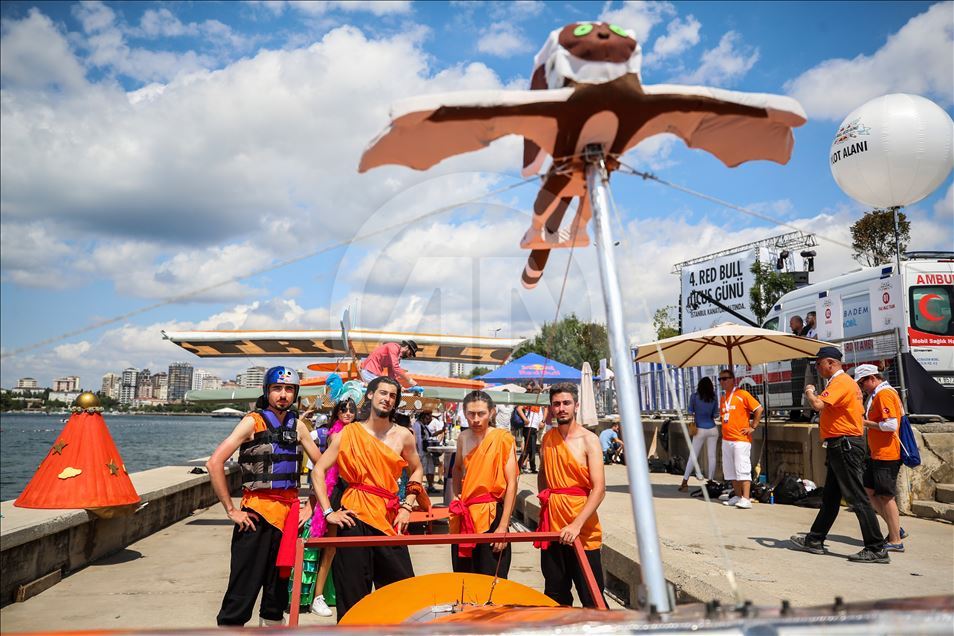 Tüm dünyada büyük ilgi gören Red Bull Uçuş Günü, İstanbul'da Caddebostan Plajı'nda gerçekleştirildi. İstanbul Büyükşehir Belediyesi iş birliğiyle düzenlenen etkinlikte, yaratıcı kostümleri, eğlenceli sahne şovları ve birbirinden ilginç el yapımı uçuş aracına sahip 35 takım yarıştı. Takımlar 6 metrelik rampadan denize atlayarak en uzun mesafeye uçmaya çalıştı. ( Muhammed Enes Yıldırım - Anadolu Ajansı )