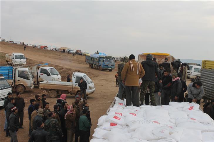 25 ton un, 17 bin adet su, 17 bin kişilik kumanya, 17 bin ekmek ile çok sayıda battaniye, eldiven ve çocuk çizmelerinden oluşan bir tır dolusu yardım Suriyeliler tarafından sınırda araçlara yüklendi. Yardımlar, Suriyelilerin kendi imkanlarıyla oluşturdukları derme çatma çadırlara götürülerek dağıtıldı.
