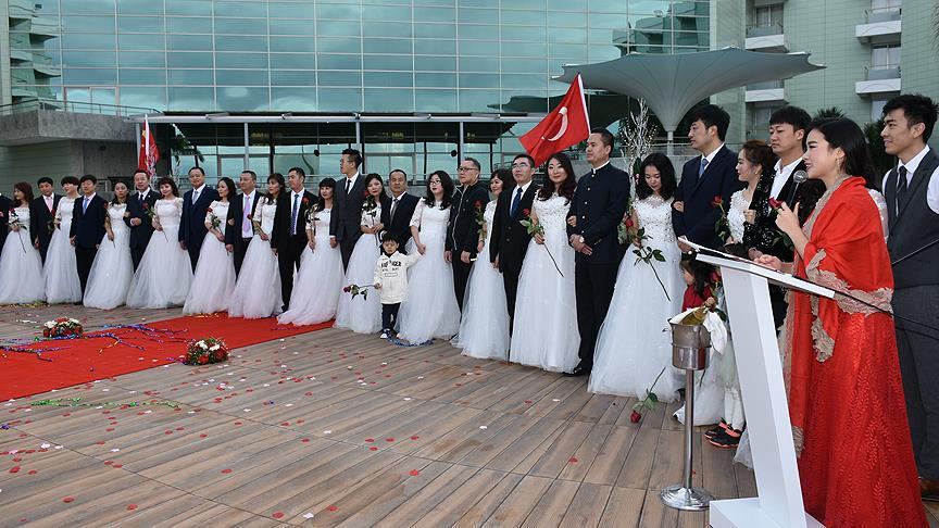 Yeni evlenen ve balayı tazelemek isteyen Çinliler'in bulunduğu grup, törende gelinlik ve damatlıklarını giydi. Çin gelenekleriyle başlayan düğün, Türk halk oyunu gösterisiyle devam etti. Oyun havalarına eşlik eden gruptaki bazı turistler, Türk usulü düğün kültürüyle tanıştı.