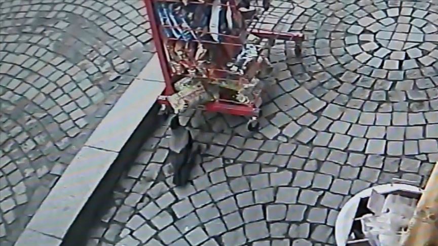 Kastamonu'nun İnebolu ilçesinde bir marketin önündeki stanttan cips paketi çalan karganın görüntüsü iş yeri kameraları tarafından kaydedildi.