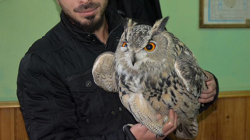 Alınan bilgiye göre, vatandaşlar köyde kanadından yaralanmış bir baykuş buldu. Kanat uzunluğu 2,5 metre olan, 4,5 kilogram ağırlığındaki baykuşu tedavi ettirmek isteyen köylüler, yaralı hayvanı ilçede bir veterinere götürdü.