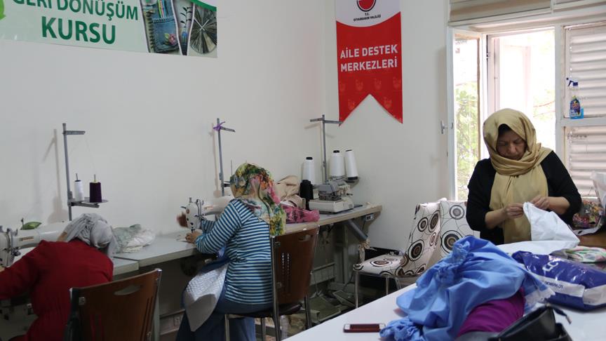 Kursiyerlerden 3 çocuk annesi Neşe Baygut (42) ise tekstil kursuna katıldığını belirterek, "Bu ortamı bize sunan yetkililere teşekkür ediyoruz. Evde oturunca çok sıkılıyorduk. Artık burası ikinci bir evimiz oldu. Ev kadınlarının buraya gelmesini tavsiye ediyorum. Bu desteği bize sağladığı için devletimize teşekkür ediyorum." dedi.