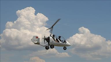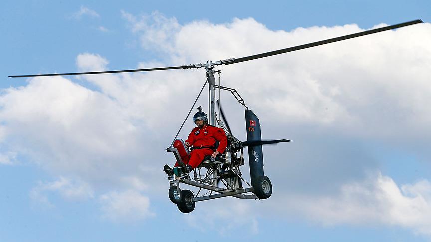 İnce ayarlar ve ısınma turlarının ardından arazide hızlanarak gökyüzüne yükselen Ceylan, görüntüsü ve çıkardığı sesle küçük bir helikoptere benzeyen "gyrocopter" ile gökyüzünde süzülüyor.