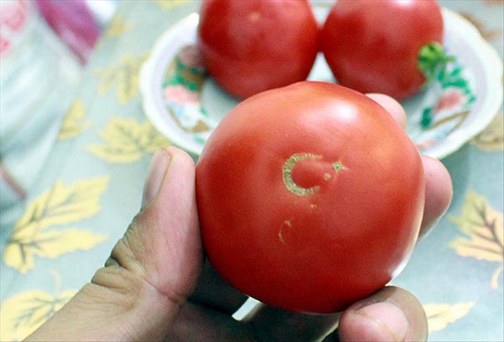Yozgat'ta yaşayan Çelebi Salman, AA muhabirine yaptığı açıklamada, pazardan aldığı domatesin üzerinde ay yıldız figürü olduğunu görünce çok şaşırdığını söyledi.