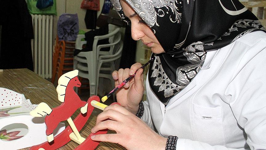 Erzurum'un Horasan ilçesinde, Halk Eğitim Merkezince açılan "Sağlıklı Bireyler için Ekolojik Oyuncak ve Ahşap Hediyelik Eşya" kursuna katılan kadınlar, hem meslek öğreniyor hem de aile ekonomisine katkıda bulunuyor.