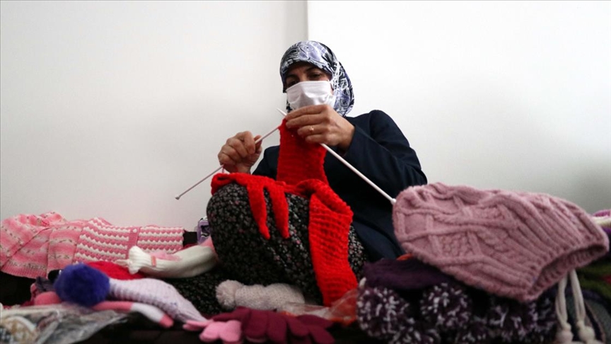 Elazığlı anneler, çadır ve konteyner kentlerde yaşamını sürdüren Suriyeli çocuklar için bere, eldiven, atkı, kazak ve yelek örüyor.