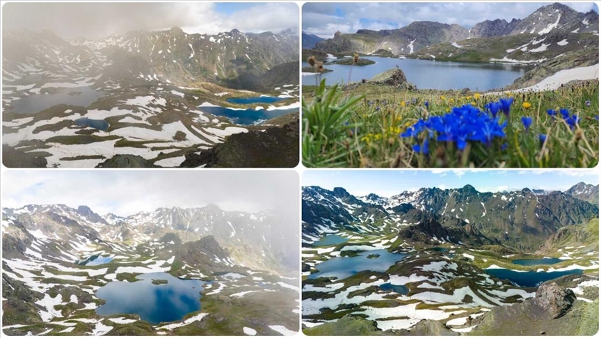 Erzurum'da 3 bin 200 rakımdaki Yedigöller'de kar ve yaz bir arada