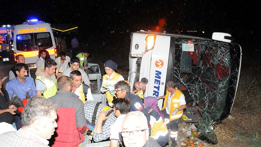 Kazada sürücü Ersevinç ile otobüste bulunan Fahrettin Boz, Fatih Ekmen, Osman Ekmen, Nuran Kümek, Kasım Güler, Onur Baydar, Sezai Eraslan, İsmail Eraslan, Ömer Nurduhan, Vedat Ahi, Hüseyin Doğru, Erhan Doğru, Engin Doğru, Fetullah Dursun, Eyüp Kılıç, Osman Aktaş, Serkan Hasar, Yusuf Altan, Muhyettin Direk, Ayşegül Pirinççi ve Suat Kaya yaralandı.