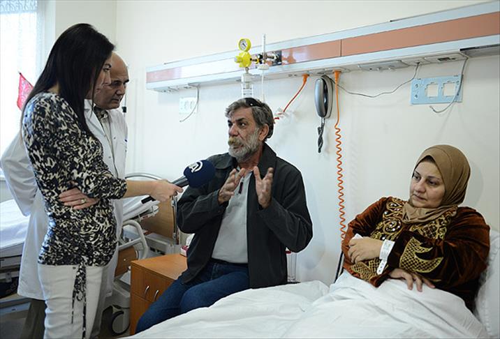 Başil el Shawwa, Sağlık Bakanlığı'nın ambulans uçağıyla Türkiye'ye getirildikten sonra Yıldırım Beyazıt Üniversitesi Tıp Fakültesi Atatürk Eğitim ve Araştırma Hastanesi'nde tedavi altına alınan eşi Mona el Shawwa ile AA muhabirinin sorularını yanıtladı.