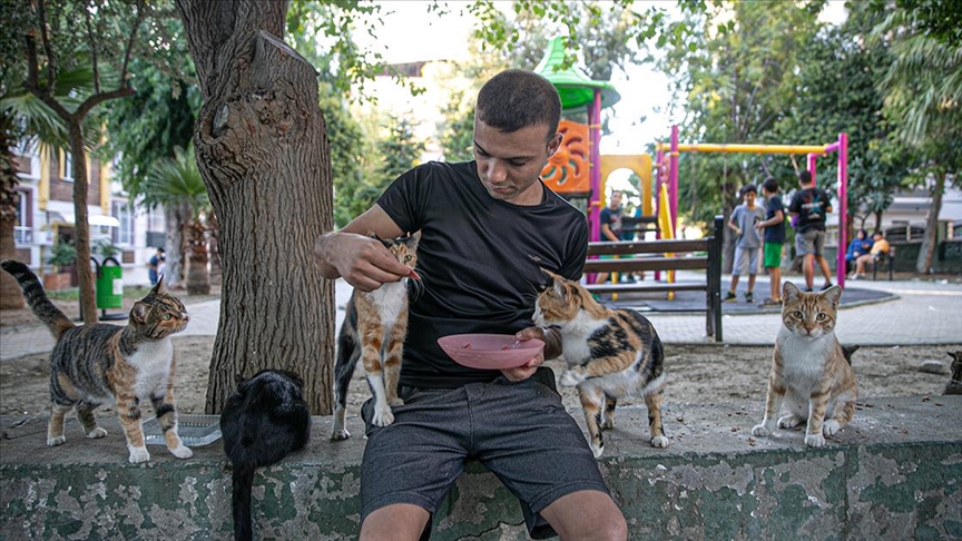 Genç hayvansever yaşadığı mahalledeki kedilere 'Umut' oldu