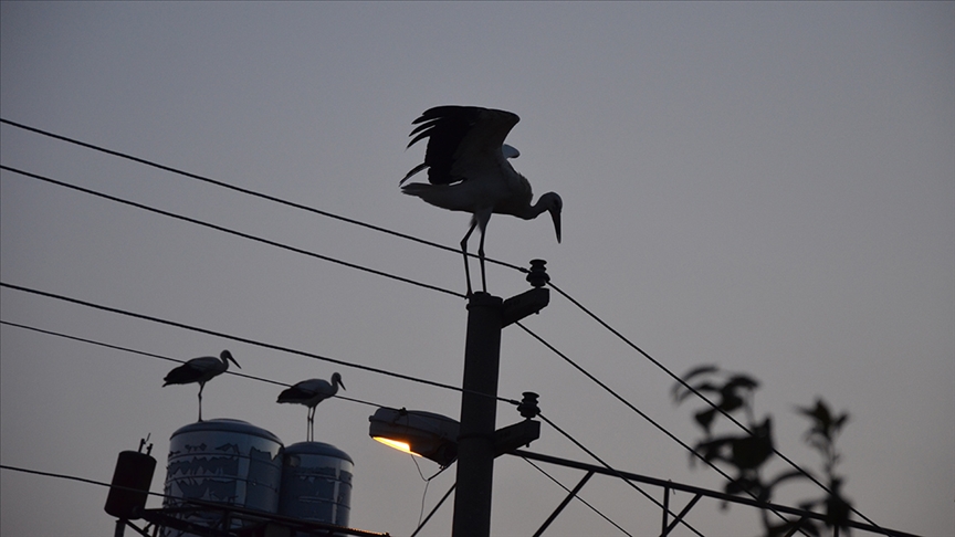 İlçe sakinlerinin cep telefonlarıyla görüntülemeye çalıştığı leyleklerin tünedikleri yerlerde geceyi geçirdikten sonra günün erken saatlerinde ilçeden ayrıldıkları görüldü.