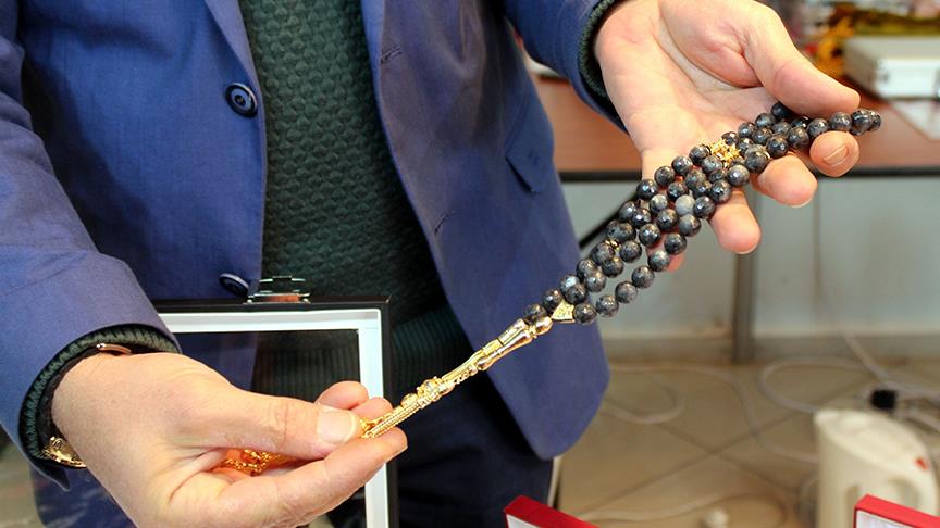 Koleksiyonluk tespihler tasarlayan İsmail Ergün, Bingöl'den getirttiği gök taşından yaptıklarını, 30 bin dolardan satışa çıkardı.