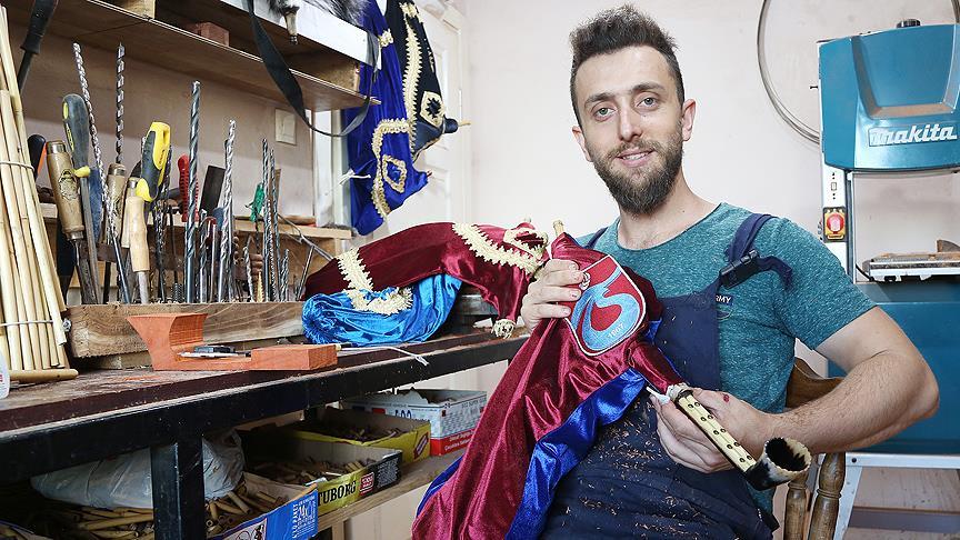 Silivri'de 60 metrekarelik iş yerini sabah saatlerinde açarak güne başlayan Bayraktutan, temin ettiği şimşir, dut, erik ve ardıç ağaçları ile keçi derisini tezgahındaki aletlerle işleyerek tulumun ilk olarak iskeletini oluşturuyor.