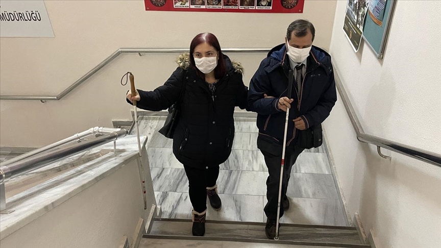 Şef memur Muazzez Geçinir, AA muhabirine, ilköğretimi Çanakkale'de görme engelliler okulunda bitirdikten sonra lise eğitimini engeli bulunmayan yaşıtlarıyla aldığını anlattı.
