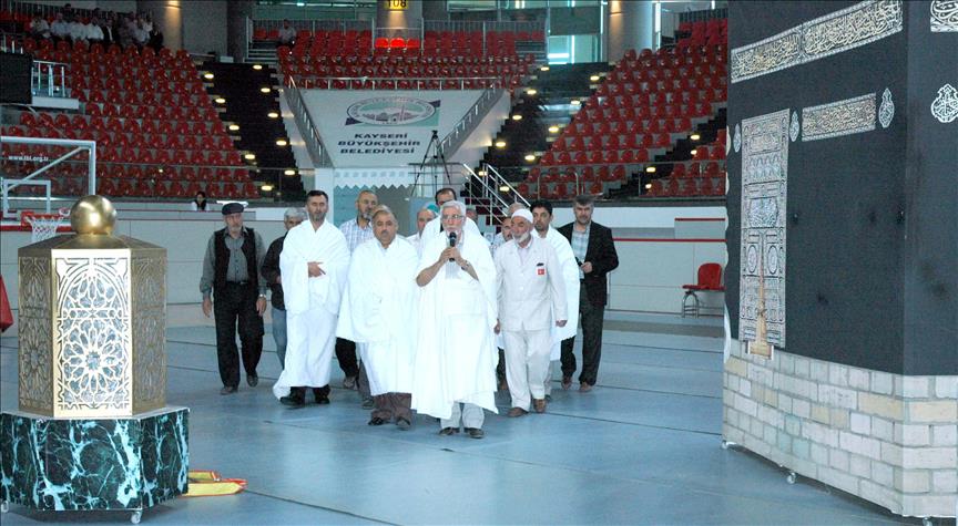 Hacı adaylarına, ihrama nasıl girecekleri ve Kabe'yi nasıl tavaf edecekleri uygulamalı olarak anlatıldı. Kadir Has Kongre ve Spor Merkezi içine kurulan Kabe maketi etrafında tavaf provası yapan hacı adayları, görevlilerin okuduğu duaları tekrarladı.