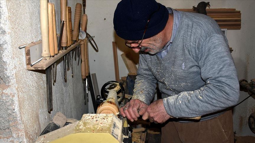 Aksaray'da 61 yaşındaki Harun Anaz, yarım asırdır gürgen ve çam keresteleri işleyerek, ev eşyası ve dekoratif hediyelik yapıyor.