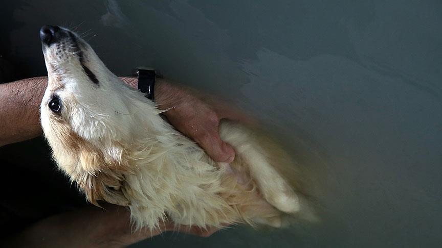 Uyuz gibi cilt problemleri olan köpeklerin de bu su içinde özel şampuanlarla yıkandığını ve daha çabuk iyileşmelerinin sağlandığını dile getiren Güneş, "Günde 3 tane köpeğimizin fizik tedavisi yapılıyor. Bu uygulamanın faydasını da gördük." diye konuştu.