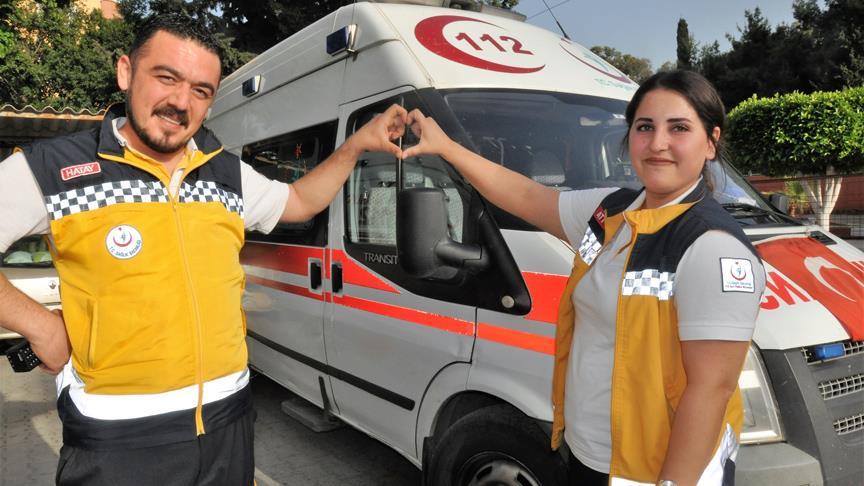Hatay'ın Dörtyol ilçesinde ambulans şoförü olarak çalışan 30 yaşındaki Sema ile eşi 35 yaşındaki Ertuğrul Şahin, vatandaşların sağlık hizmetine en hızlı ve en güvenli yoldan ulaşabilmesi için görevlerini özveriyle yerine getiriyor.