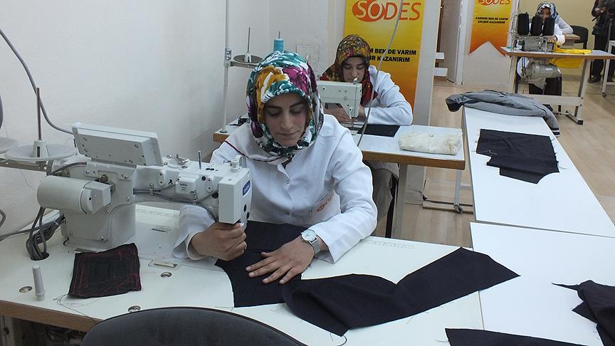 Erzurum'un Pasinler ilçesinde Sosyal Destek Programı (SODES) kapsamında başlatılan "Kadınım Ben de Varım Çalışır Kazanırım Projesi"ne katılan kadınlar, hayallerini gerçekleştirmek için meslek öğreniyor.