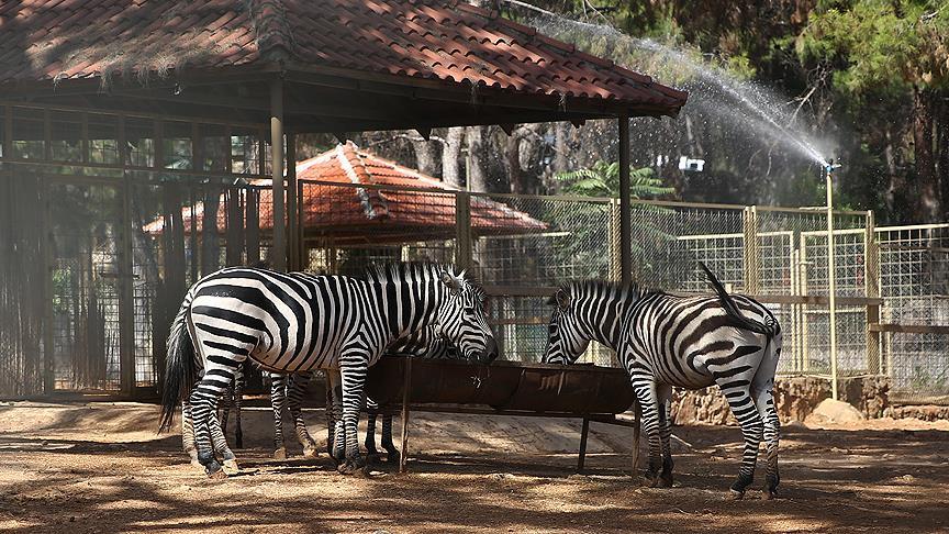 Kepez ilçesinde 330 dönüm orman arazisinde yer alan ve 130'u aşkın türde bin 500'e yakın hayvanın bulunduğu bahçedeki hayvanların sıcaktan etkilenmesini en aza indirmek için çeşitli önlemler alındı. Hayvanat bahçesi yetkilileri, deve, zebra ve geyik gibi hayvanları fıskiyelerle serinletiyor.