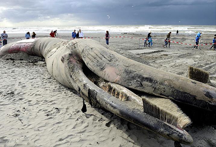 Dün sahile vurulan 16,5 metre uzunluğundaki balinanın pazar günü öldüğü tahmin ediliyor. Balinanın ölüm nedeni araştırılırken, kıyı kasabası ‘s-Gravenzande’de son 100 yılda 8 balığın sahile vurduğu belirtildi.