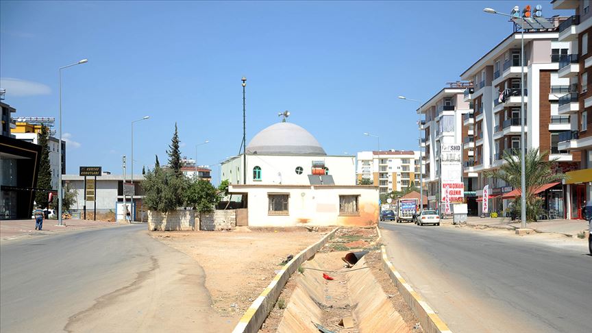 Antalya'da imar planlamasının ardından iki yol arasında kalan cami dikkati çekiyor.