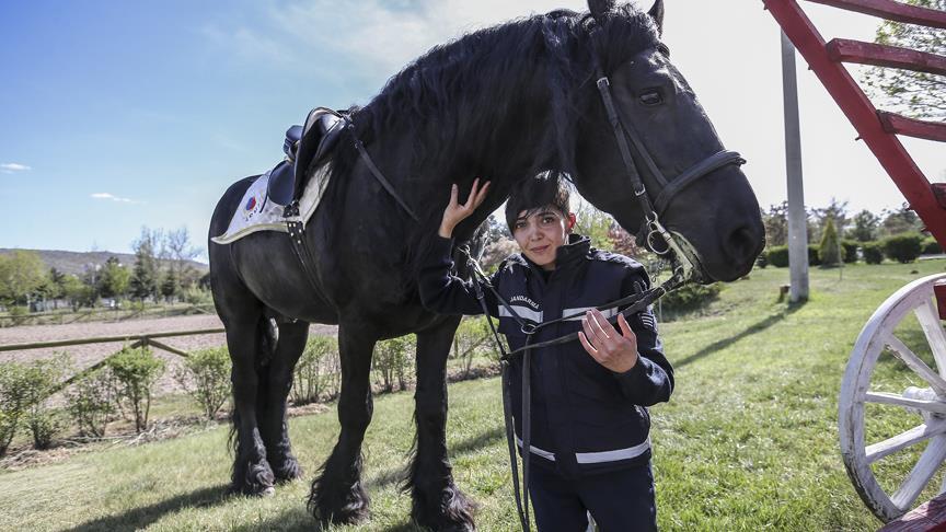 Nevşehir'de Jandarma Genel Komutanlığı bünyesinde faaliyet gösteren at ve köpek eğitim merkezinde görev yapan astsubay Hülya Özkan Apaydın, atların eğitiminde önemli rol oynuyor.
