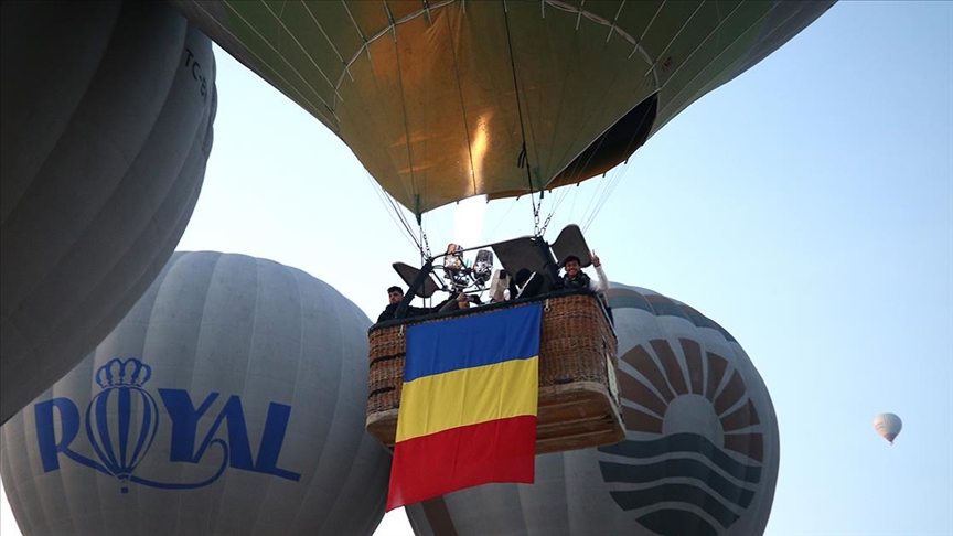 Romanya'nın Nevşehir-Kayseri Fahri Konsolosluğunca gerçekleştirilen etkinlikte, bazı sıcak hava balonlarının sepetlerine Romanya bayrakları asıldı.