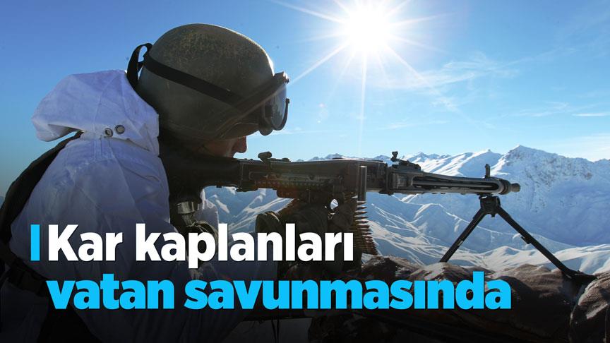 Mehmetçik, Şemdinli'de hava sıcaklığının sıfırın altında 35 dereceye kadar düştüğü 2 bin 865 rakımlı Mirgesav Dağı ve 2 bin 640 rakımlı Gedik Tepe üs bölgelerinde yer yer 7 metreyi bulan karda vatan savunması için nöbet tutuyor.