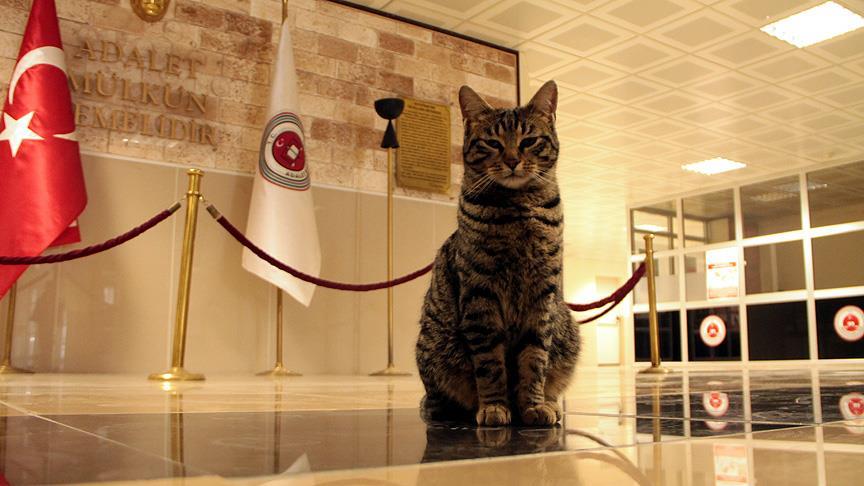 Soğuk kış günlerinde Amasya Adliyesine sığınan ve çalışanların "Adalet" adını vererek beslemeye başladıkları kedi, adliyenin maskotu haline geldi.