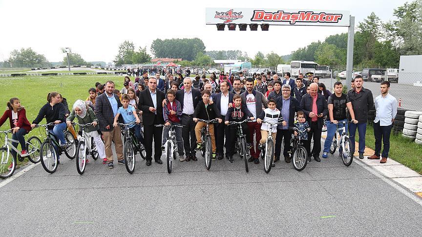 Yetim çocuklar, daha sonra Vali Yardımcısı Mehmet Fatih Çiçekli'nin start vermesiyle bisikletleriyle pistte tur attı.