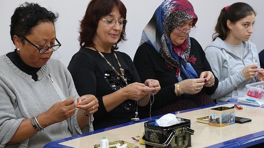 Kocaeli'nin Kandıra ilçesinde yaşayan Madagaskarlı doktor Voang Erker, belediyenin açtığı kursta iğne oyası öğreniyor.