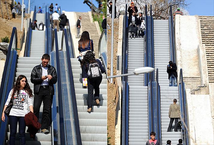Kış şartlarında da çalışan ve 3 bölümden oluşan yürüyen merdiven sayesinde kent merkezinden, bu mahallelerde bulunan 2 hastane ve 7 okula da ulaşım daha kolay sağlanacak.