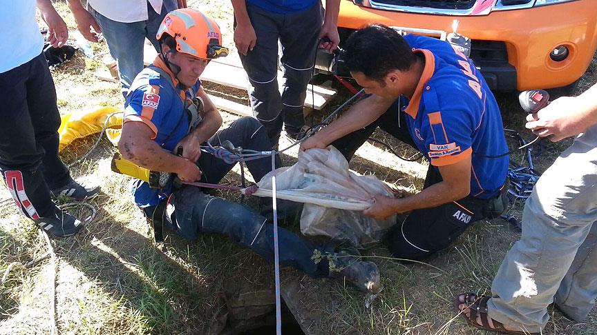 Olay yerine gelen AFAD ekipleri, 3 saatlik çalışma sonucu halat yardımıyla kuyuya inerek köpeği ve kuyuda doğurduğu 8 yavrusunu kurtardı.