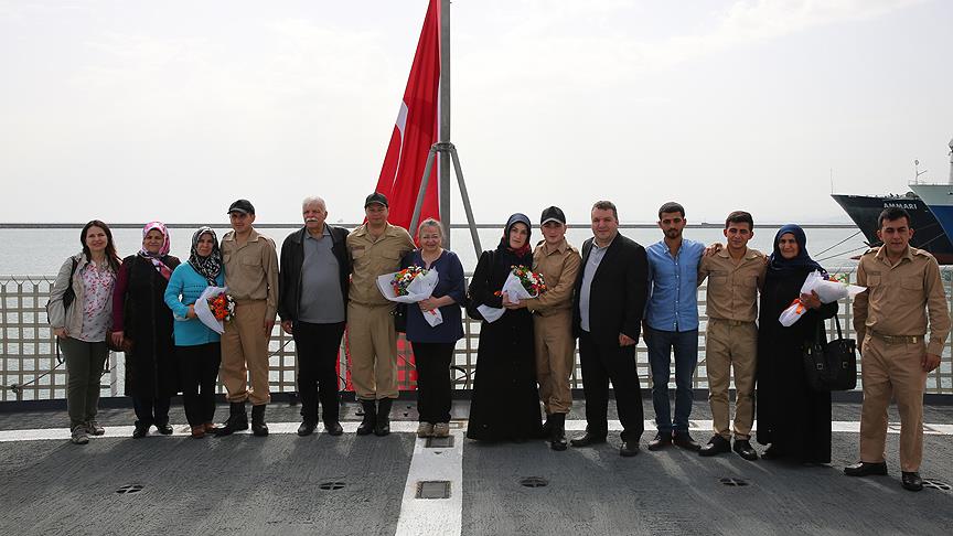 Samsun'da Sahil Güvenlik Karadeniz Bölge Komutanlığında görev yapan 4 asker, "Anneler Günü"nü aileleri ile geçirmenin sevincini yaşadı.