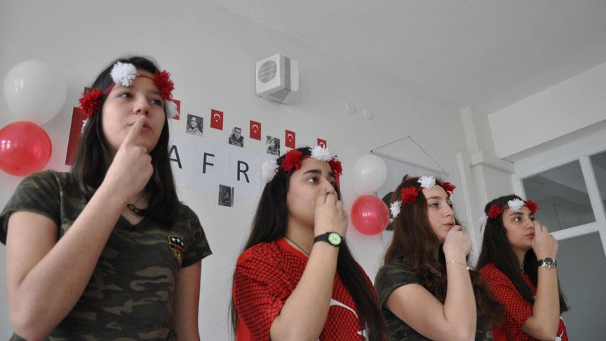 Eskişehir'de bir grup lise öğrencisi, şehitlik ve kahramanlığı işaret diliyle anlatmaları amacıyla verilen performans ödevini geliştirerek, Suriye'nin Afrin bölgesinde düzenlenen Zeytin Dalı Harekatı'nda görevli askerler için video klibe dönüştürdü.
